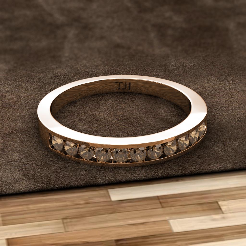 Shining with opulence and femine appeal,this 0.33 Carat tw Wedding Band inspires any attire with Glittering Round Channel Set Smoky Quartz making your Wedding day more Enduring.