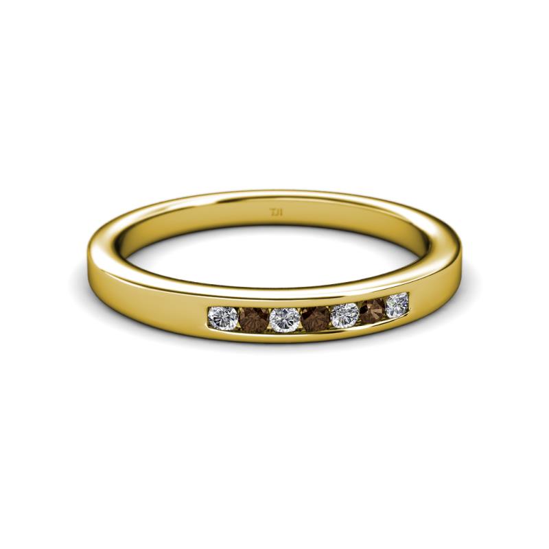 Smoky Quartz and Diamond 7 Stone Channel Set Womens Wedding Band Stackable 0.21 ctw 18K Yellow Gold More Details ...