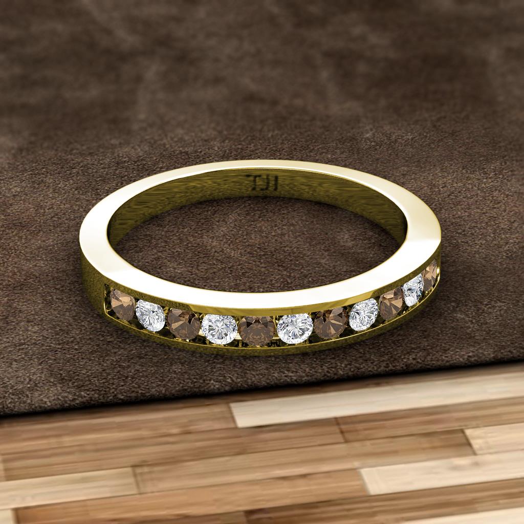 Smoky Quartz and Lab Grown Diamond 11 Stone Channel Set Womens Wedding Band Stackable 0.33 ctw 10K Yellow Gold More Details ...