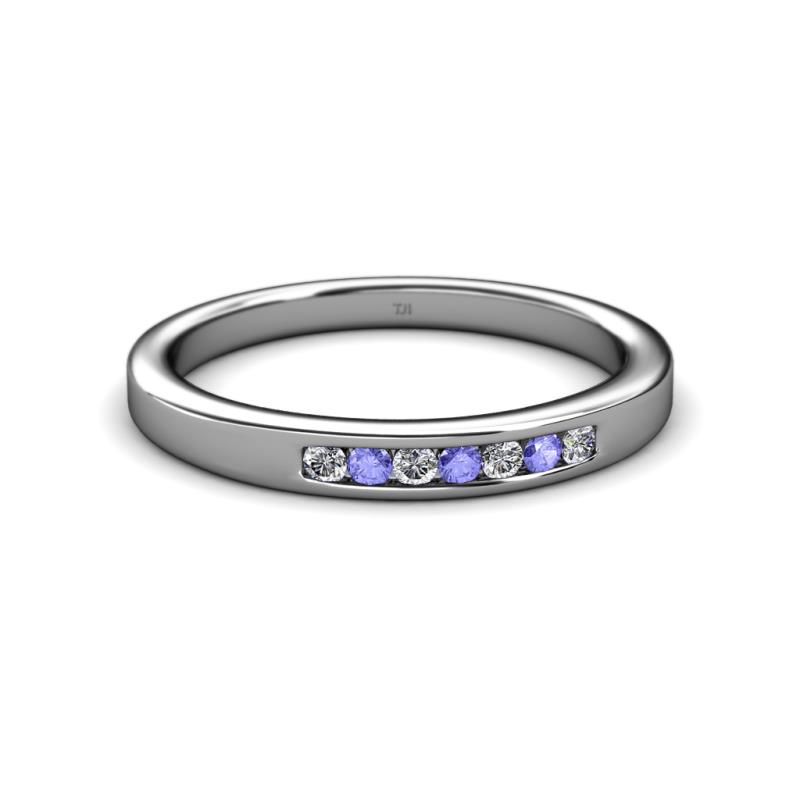Tanzanite and Diamond 7 Stone Channel Set Womens Wedding Band Stackable 0.20 ctw Sterling Silver More Details ...