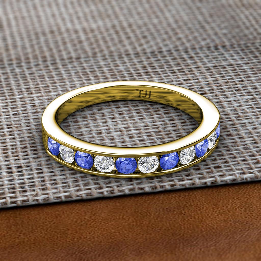 Tanzanite and Lab Grown Diamond 1 ctw 11 Stone Channel Set Womens Wedding Band Stackable 10K Yellow Gold More Details ...