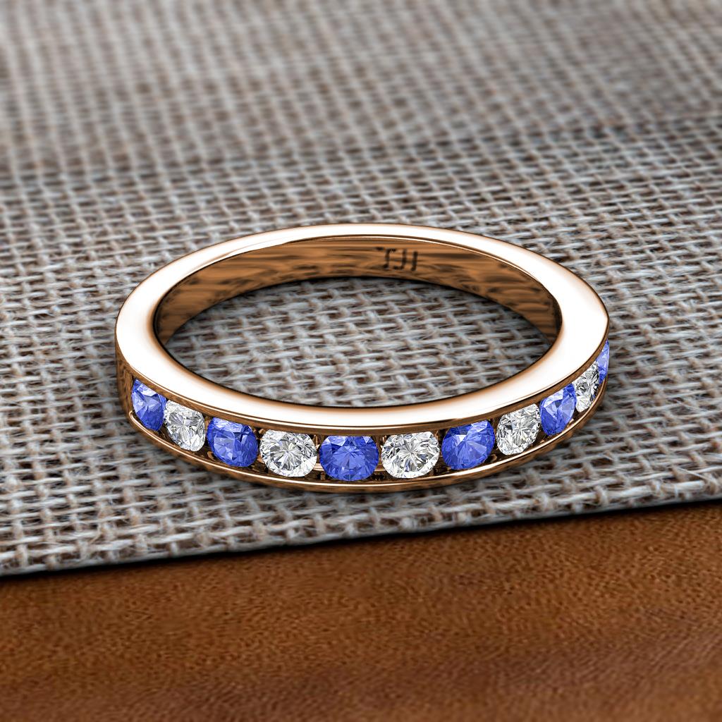 Tanzanite and Lab Grown Diamond 1 ctw 11 Stone Channel Set Womens Wedding Band Stackable 10K Rose Gold More Details ...
