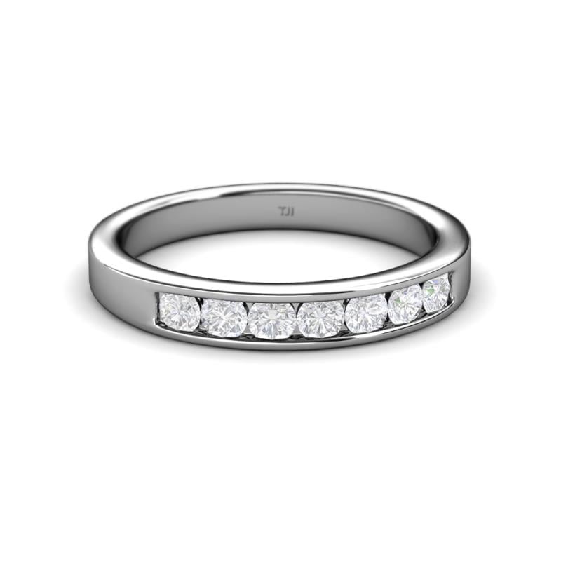 White Sapphire 7 Stone Channel Set Womens Wedding Band Stackable 0.74 ctw 10K White Gold More Details ...