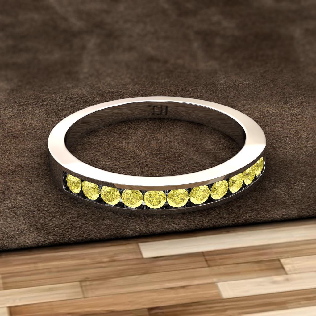 Shining with opulence and femine appeal,this 0.35 Carat tw Wedding Band inspires any attire with Glittering Round Channel Set Yellow Sapphire making your Wedding day more Enduring.