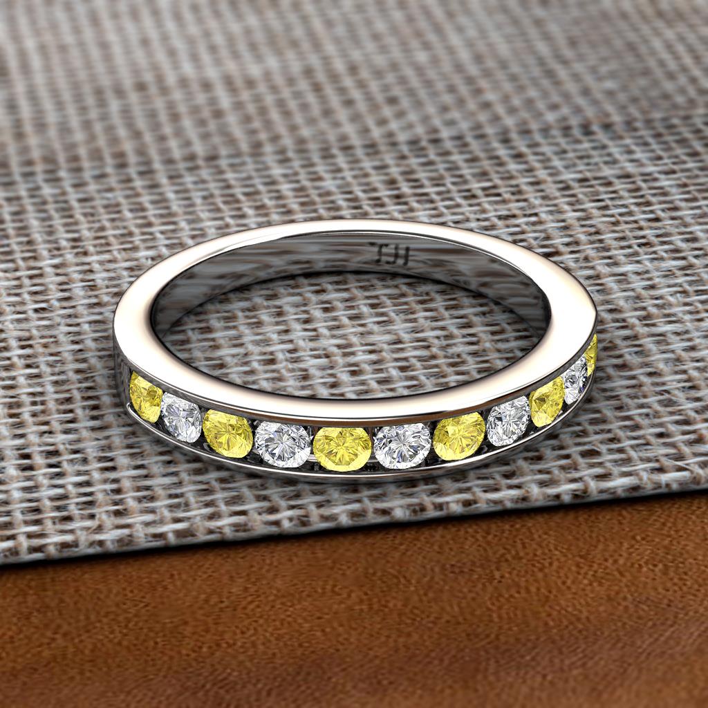 Yellow Sapphire and Diamond 1 1/8 ctw 11 Stone Channel Set Womens Wedding Band Stackable 14K White Gold More Details ...