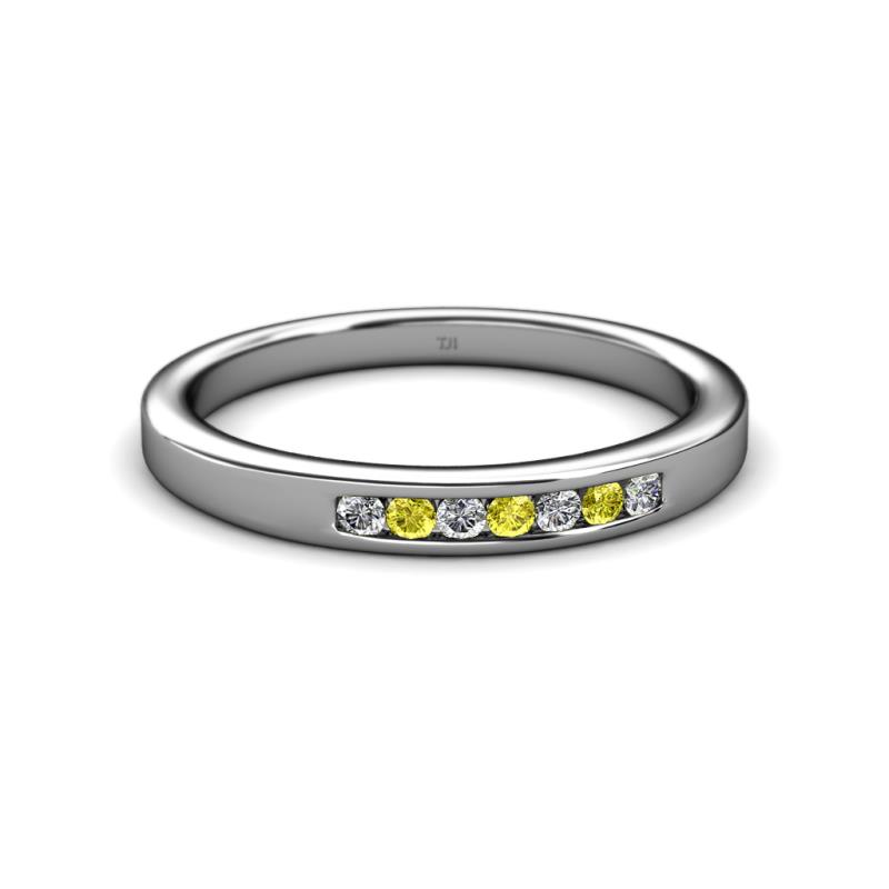 Yellow and White Diamond 7 Stone Channel Set Womens Wedding Band Stackable 0.21 ctw 10K White Gold More Details ...