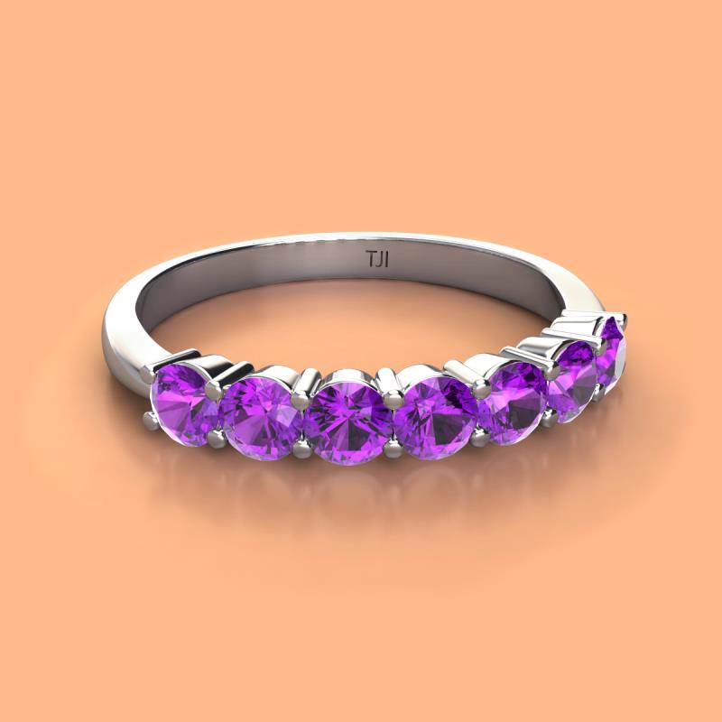 Round Amethyst 0.98 ctw 7 Stone Womens Wedding Band Stackable 10K White Gold More Details ...