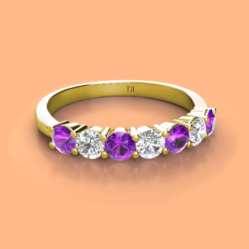 Round Amethyst and Diamond 1.01 ctw 7 Stone Womens Wedding Band Stackable 18K Yellow Gold More Details ...
