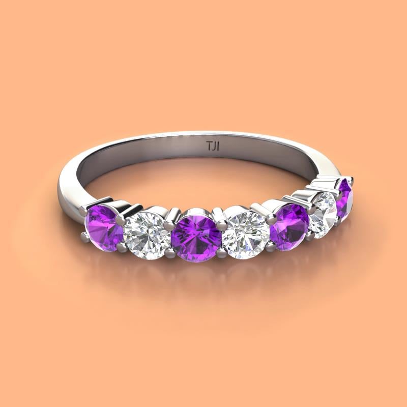 What's a better way to symbolize forever than with a wedding band? This glamorous wedding band has 4 Amethyst and 3 Diamond boasts a unique and captivating visual appeal at every glance you take.
