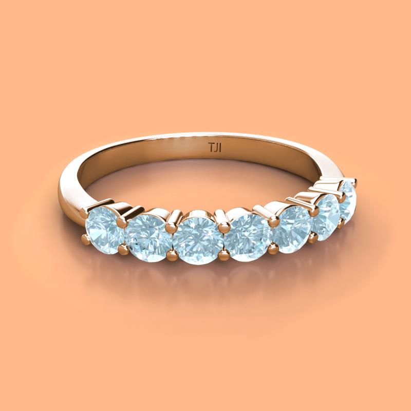 Round Aquamarine 0.98 ctw 7 Stone Womens Wedding Band Stackable 10K Rose Gold More Details ...