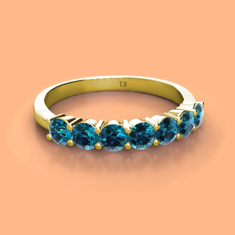 Round Blue Diamond 1.05 ctw 7 Stone Womens Wedding Band Stackable 18K Yellow Gold More Details ...