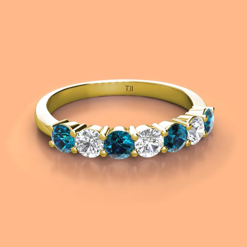 Round Blue Diamond and White Lab Grown Diamond 1.05 ctw 7 Stone Womens Wedding Band Stackable 18K Yellow Gold More Details ...