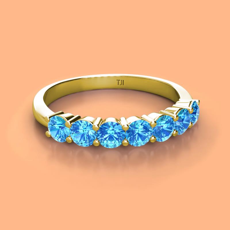 Round Blue Topaz 0.98 ctw 7 Stone Womens Wedding Band Stackable 10K Yellow Gold More Details ...