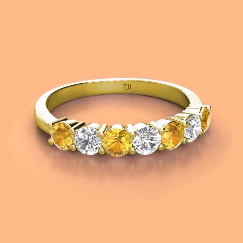 Round Citrine and Lab Grown Diamond 1.01 ctw 7 Stone Womens Wedding Band Stackable 10K Yellow Gold More Details ...