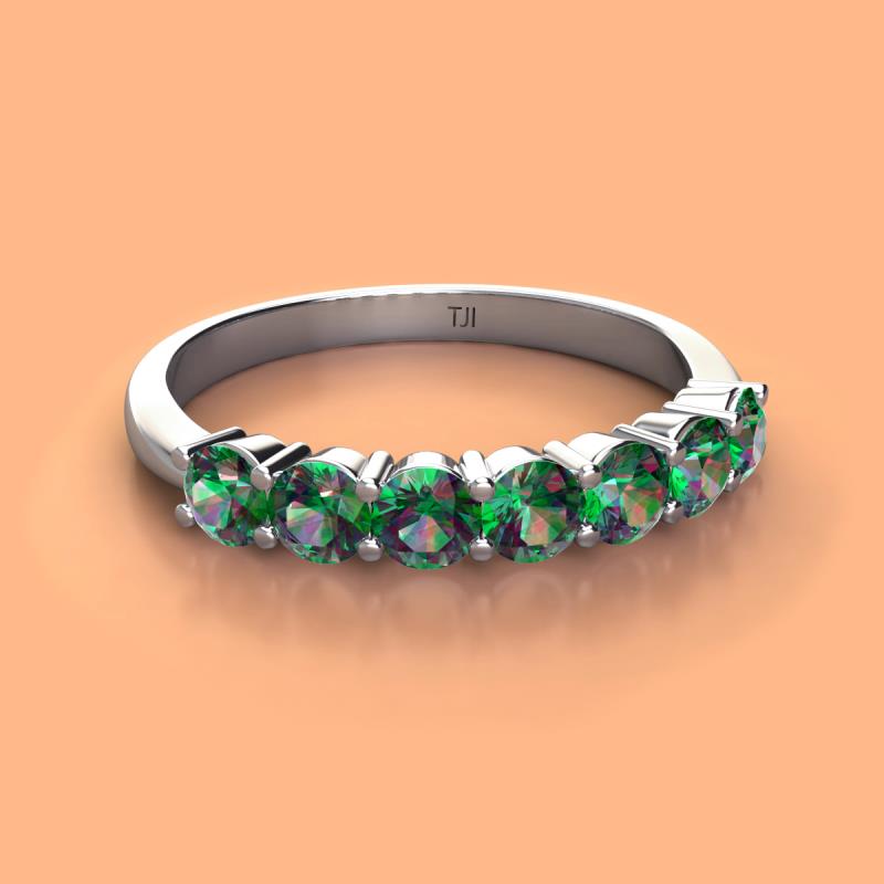 What's a better way to symbolize forever than with a wedding band? This glamorous wedding band has 7 Created Alexandrite boasts a unique and captivating visual appeal at every glance you take.