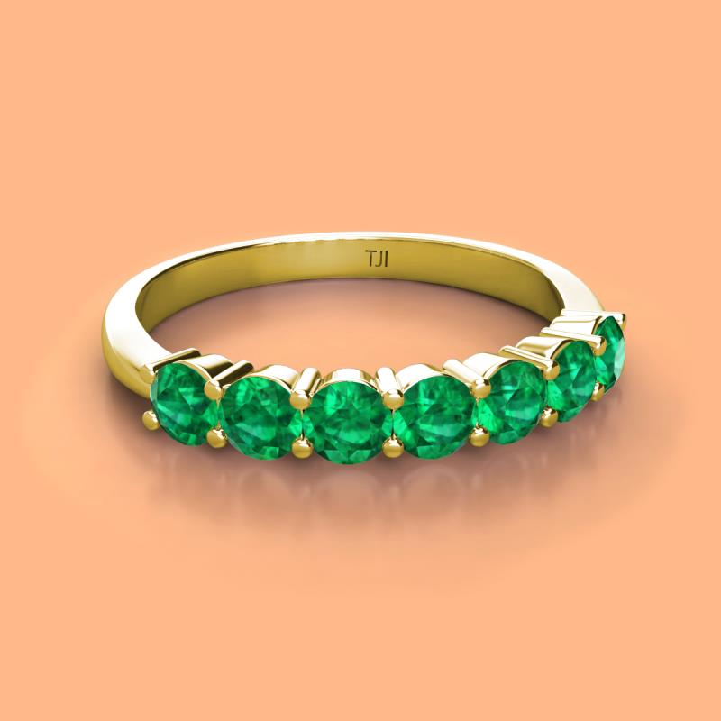 Round Emerald 0.98 ctw 7 Stone Womens Wedding Band Stackable 18K Yellow Gold More Details ...