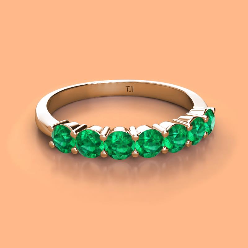 Round Emerald 0.98 ctw 7 Stone Womens Wedding Band Stackable 10K Rose Gold More Details ...