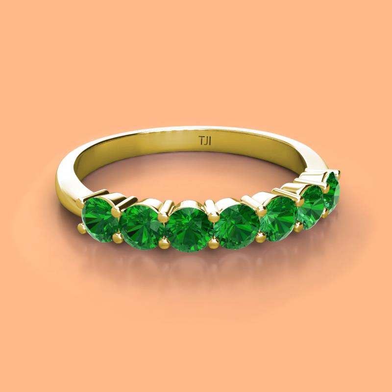 Round Green Garnet 1.18 ctw 7 Stone Womens Wedding Band Stackable 10K Yellow Gold More Details ...