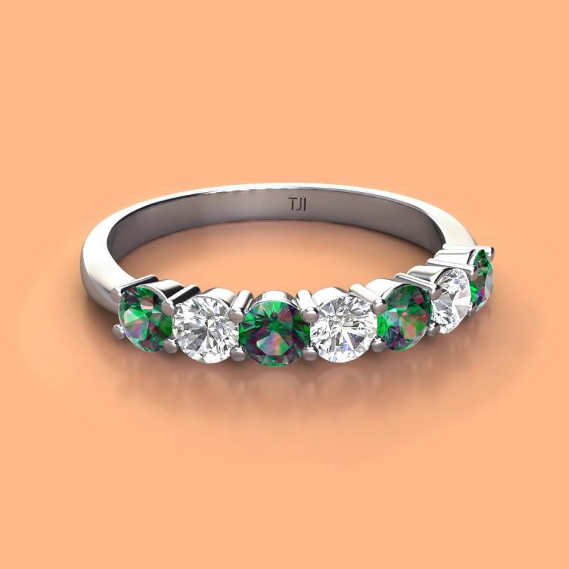 Round Lab Lab Created Alexandrite and Diamond 1.12 ctw 7 Stone Womens Wedding Band Stackable Sterling Silver More Details ...