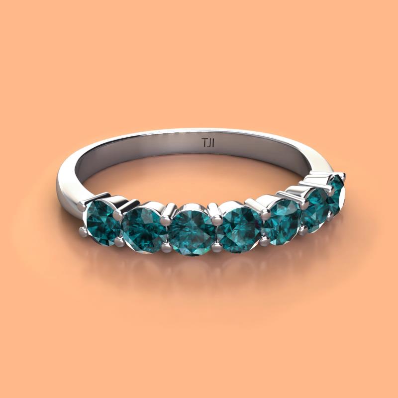 Round London Blue Topaz 0.98 ctw 7 Stone Womens Wedding Band Stackable 10K White Gold More Details ...