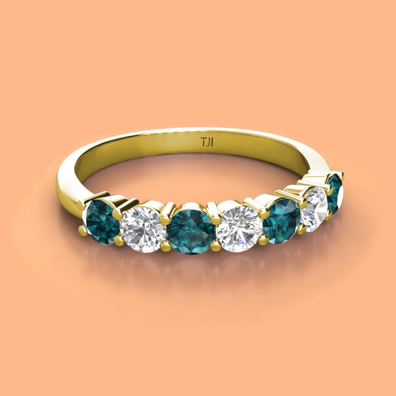 Round London Blue Topaz and Diamond 1.01 ctw 7 Stone Womens Wedding Band Stackable 10K Yellow Gold More Details ...