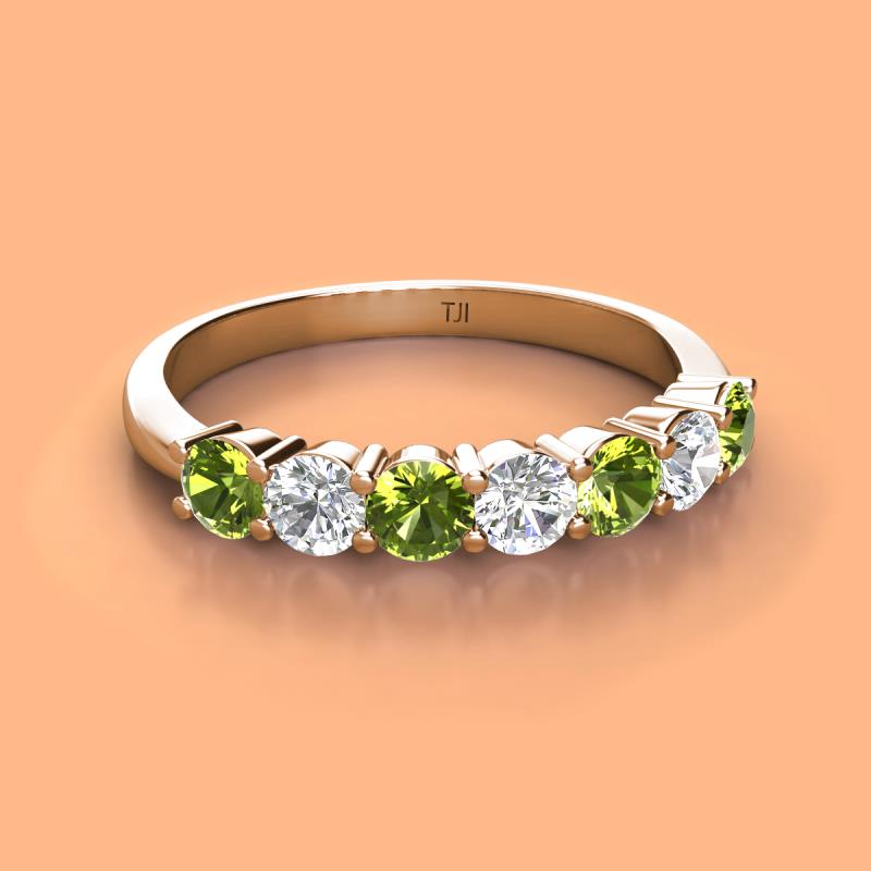Round Peridot and Diamond 1.12 ctw 7 Stone Womens Wedding Band Stackable 10K Rose Gold More Details ...