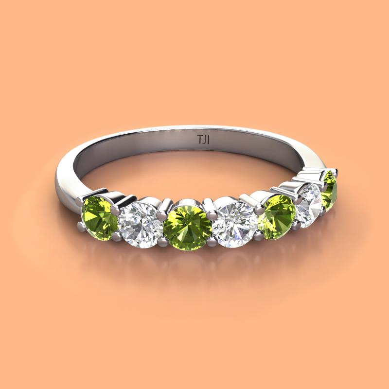 Round Peridot and Lab Grown Diamond 1.12 ctw 7 Stone Womens Wedding Band Stackable 10K White Gold More Details ...