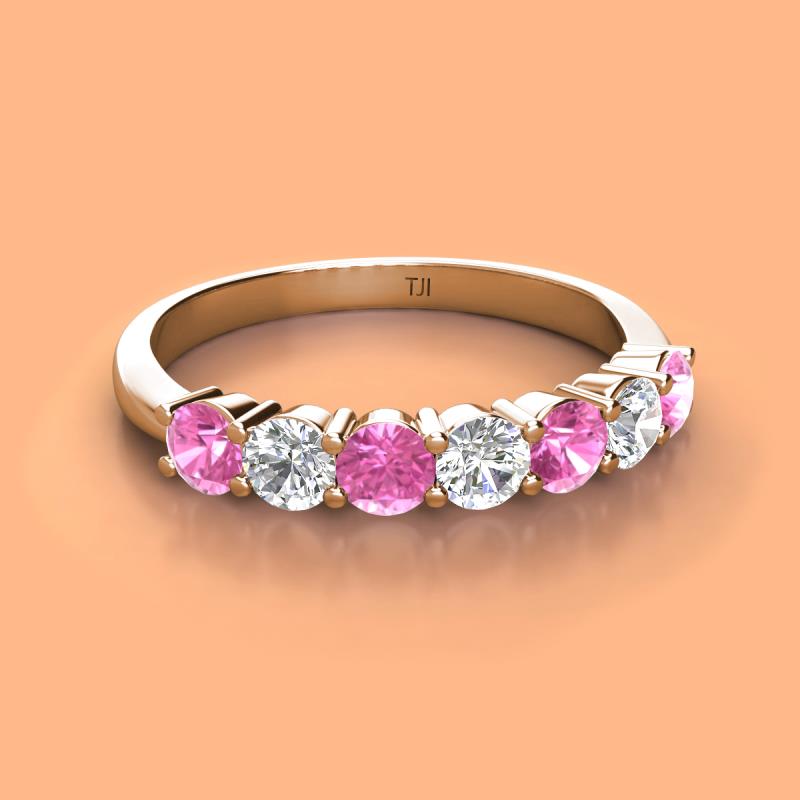 Round Pink Sapphire and Diamond 1.08 ctw 7 Stone Womens Wedding Band Stackable 10K Rose Gold More Details ...