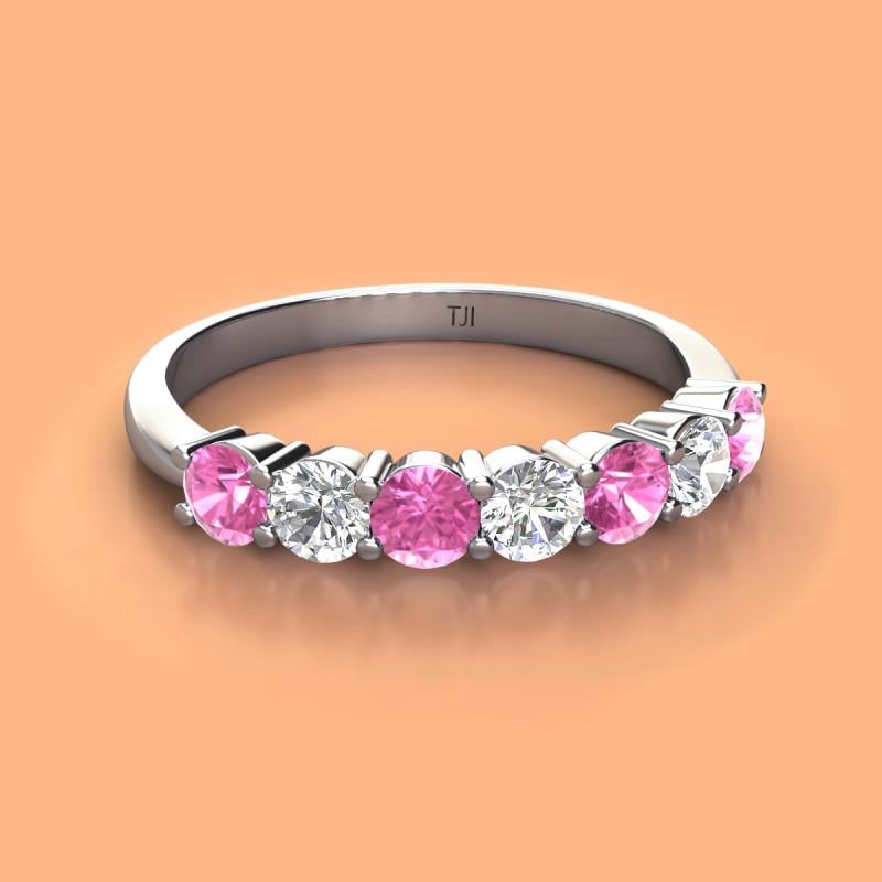 Round Pink Sapphire and Diamond 1.08 ctw 7 Stone Womens Wedding Band Stackable Sterling Silver More Details ...