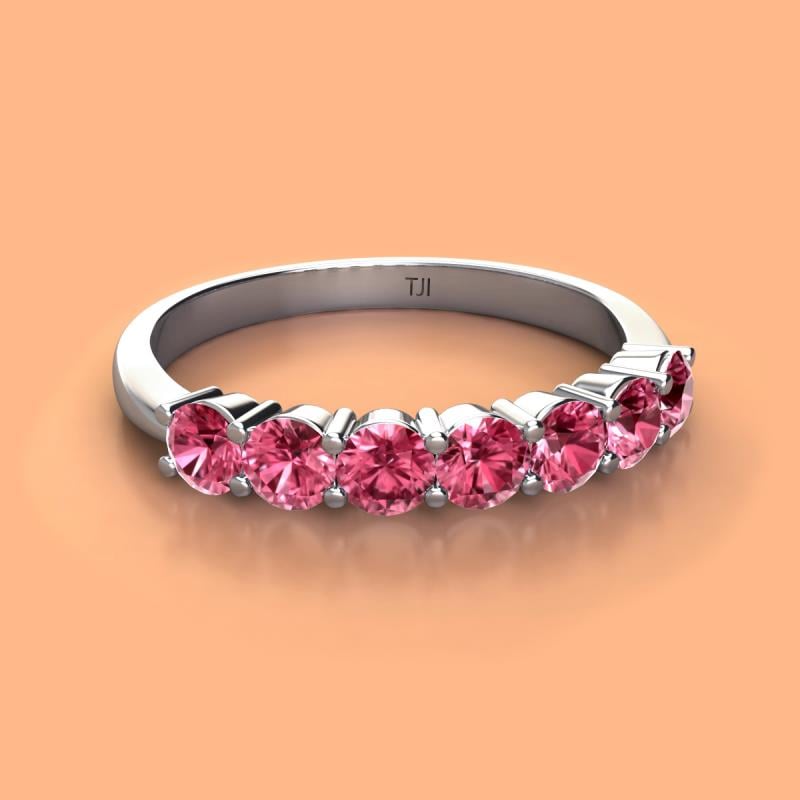 Round Pink Tourmaline 1.05 ctw 7 Stone Womens Wedding Band Stackable Sterling Silver More Details ...