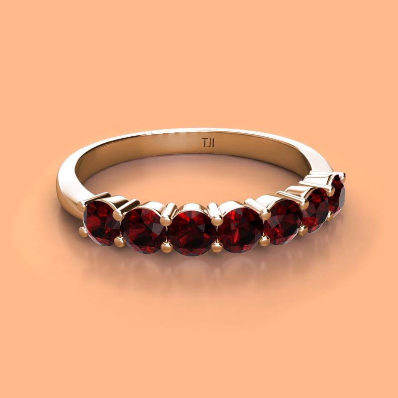 Round Red Garnet 1.18 ctw 7 Stone Womens Wedding Band Stackable 18K Rose Gold More Details ...