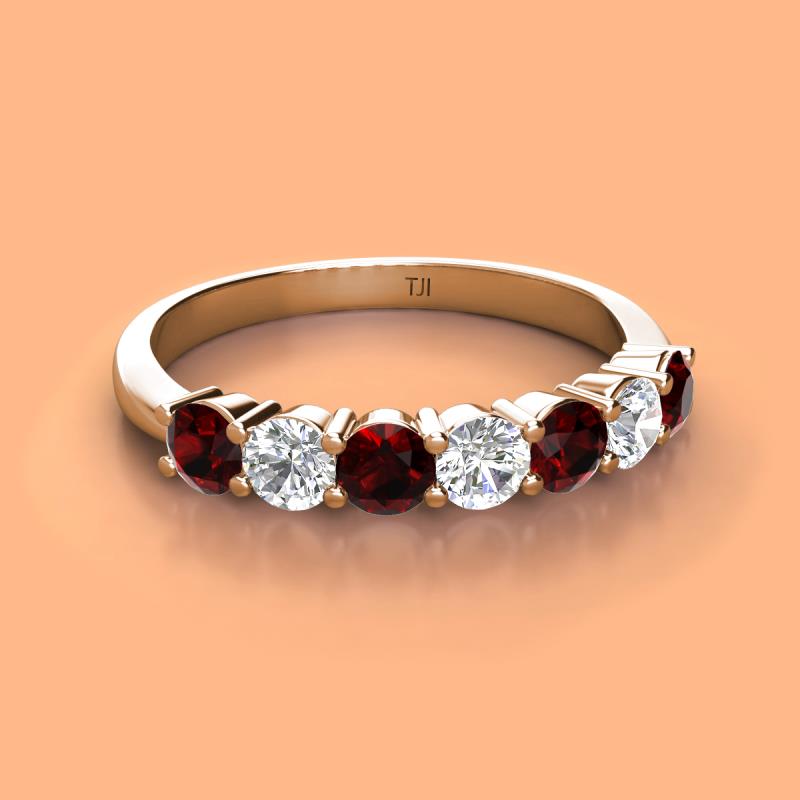 Round Red Garnet and Lab Grown Diamond 1.12 ctw 7 Stone Womens Wedding Band Stackable 10K Rose Gold More Details ...