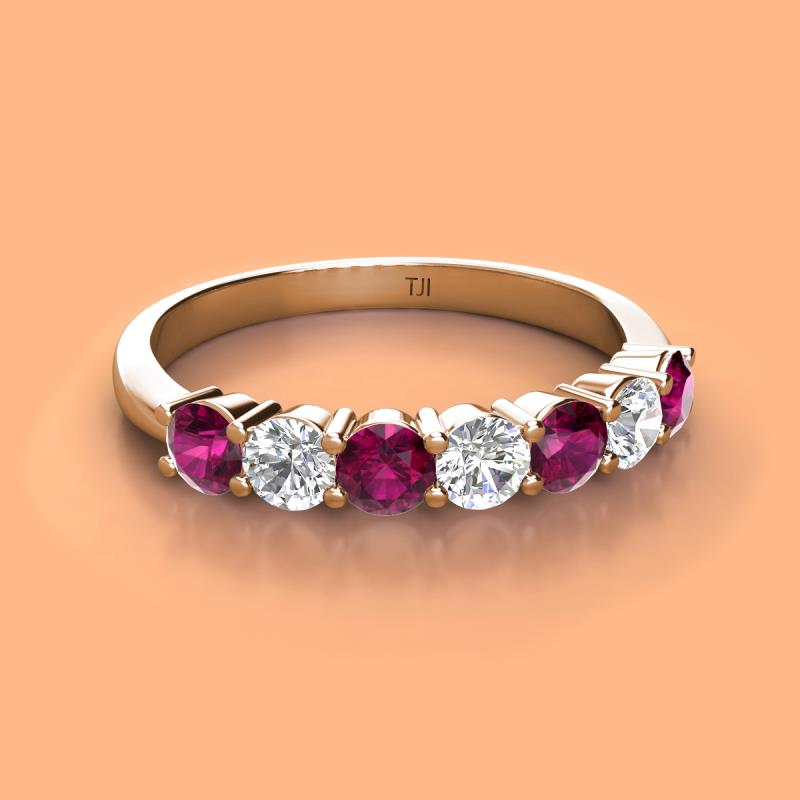 Round Rhodolite Garnet and Lab Grown Diamond 1.12 ctw 7 Stone Womens Wedding Band Stackable 10K Rose Gold More Details ...