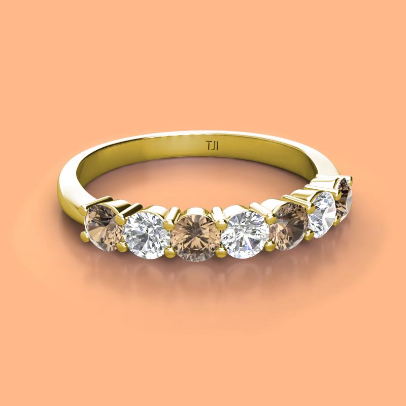 Round Smoky Quartz and Diamond 1.05 ctw 7 Stone Womens Wedding Band Stackable 10K Yellow Gold More Details ...