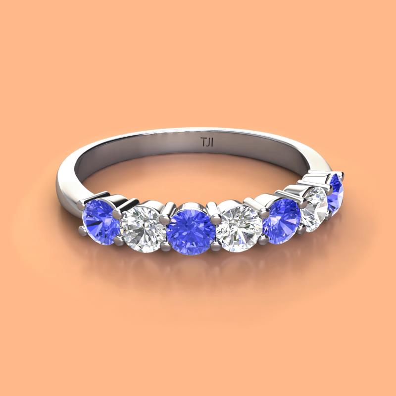 Round Tanzanite and Lab Grown Diamond 1.05 ctw 7 Stone Womens Wedding Band Stackable 10K White Gold More Details ...