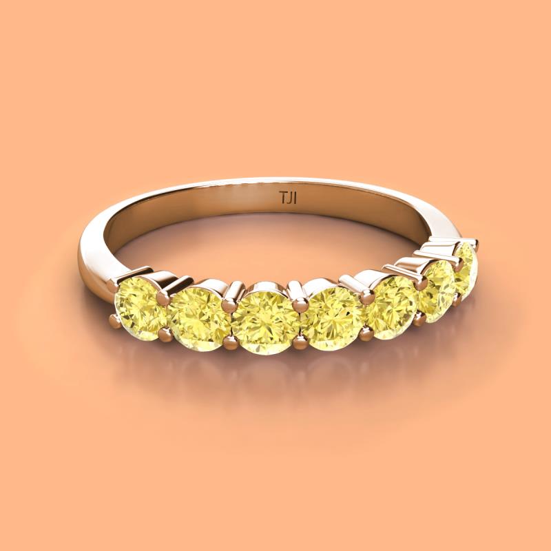 Round Yellow Sapphire 1.10 ctw 7 Stone Womens Wedding Band Stackable 10K Rose Gold More Details ...
