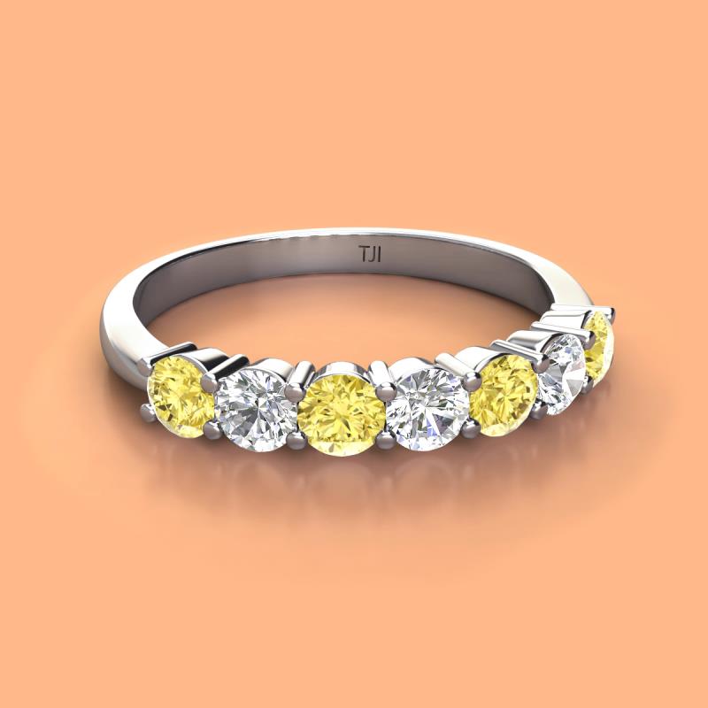Round Yellow Sapphire and Diamond 1.08 ctw 7 Stone Womens Wedding Band Stackable 10K White Gold More Details ...