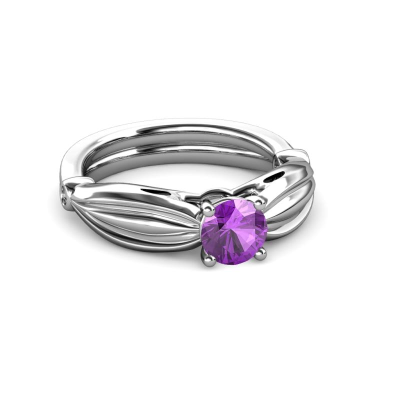 1 ctw Round Amethyst and Diamond Solitaire Plus Engagement Ring 18K White Gold More Details ...