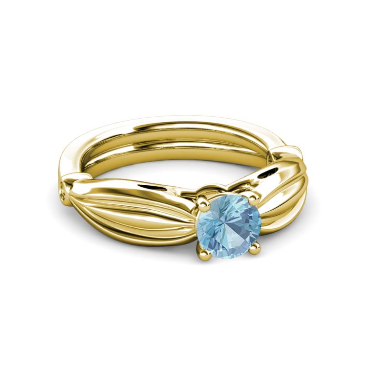 1 ctw Round Aquamarine and Diamond Solitaire Plus Engagement Ring 14K Yellow Gold More Details ...
