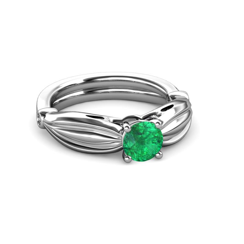 3/4 ctw Round Emerald and Diamond Solitaire Plus Engagement Ring 14K White Gold More Details ...