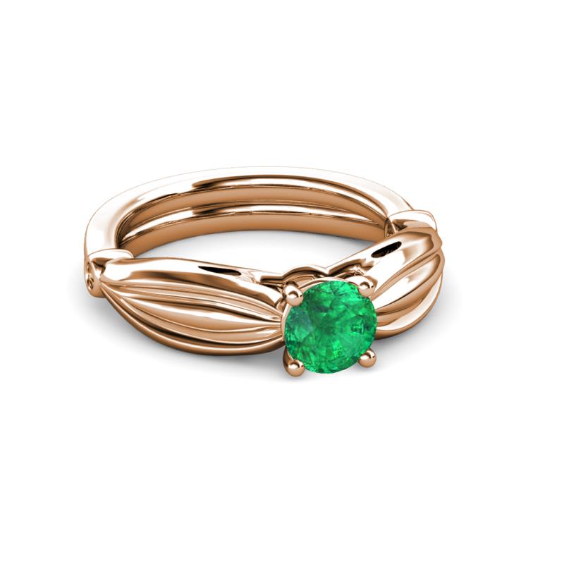 3/4 ctw Round Emerald and Diamond Solitaire Plus Engagement Ring 14K Rose Gold More Details ...