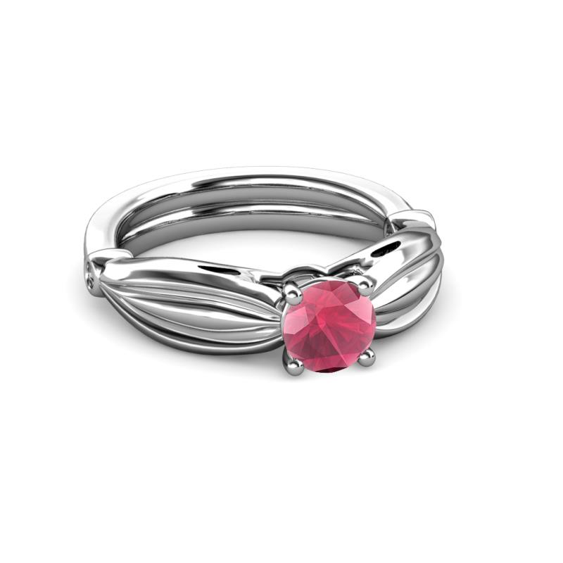 1 ctw Round Rhodolite Garnet and Diamond Solitaire Plus Engagement Ring 14K White Gold More Details ...