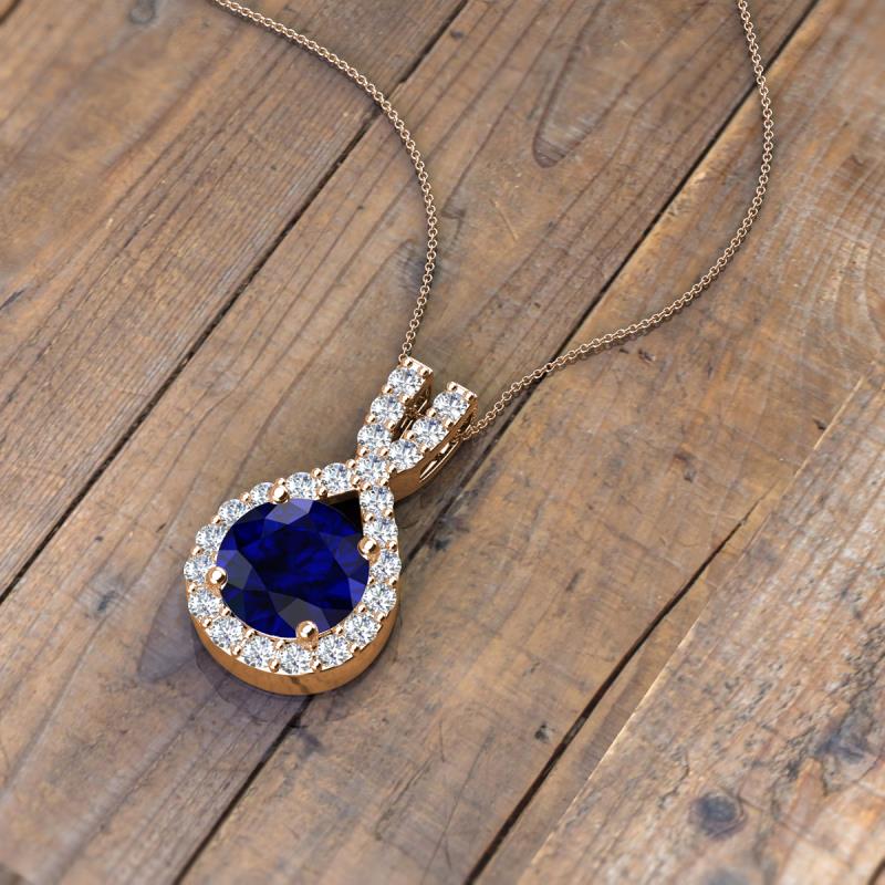 Round Blue Sapphire and Diamond 1.36 ctw Womens Halo Pendant Necklace 14K Rose Gold.Included 16 Inches 14K Rose Gold Chain More Details ...