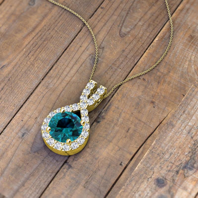 Round Blue Diamond and White Diamond 1.26 ctw Womens Halo Pendant Necklace 14K Yellow Gold.Included 16 Inches 14K Yellow Gold Chain More Details ...