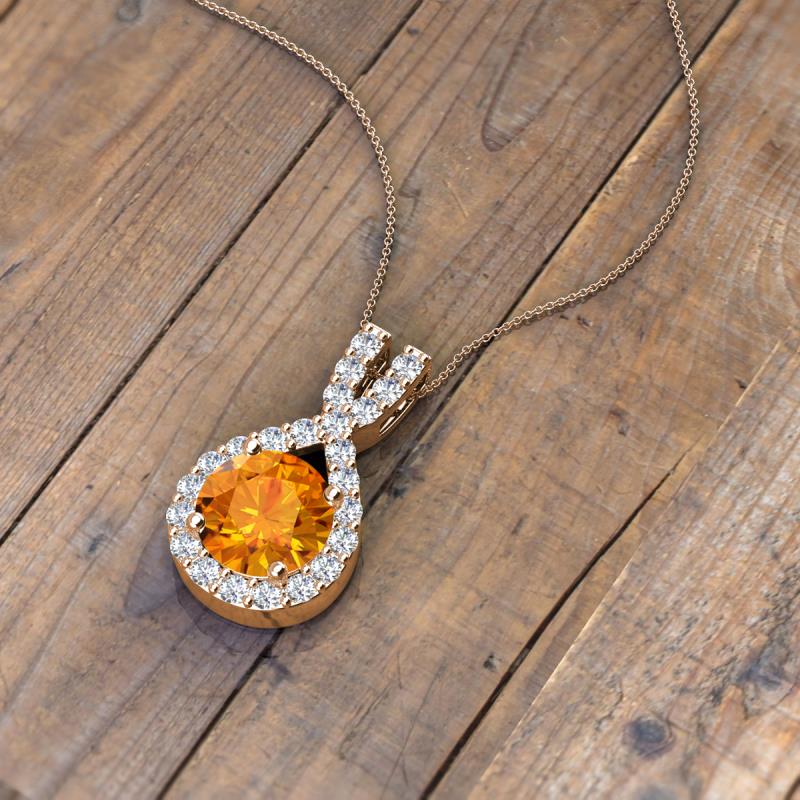 Round Citrine and Diamond 1.08 ctw Womens Halo Pendant Necklace 14K Rose Gold.Included 16 Inches 14K Rose Gold Chain More Details ...