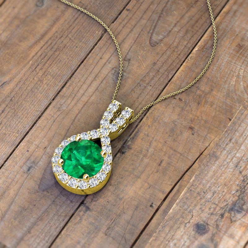 Round Emerald and Diamond 1.16 ctw Womens Halo Pendant Necklace 14K Yellow Gold.Included 16 Inches 14K Yellow Gold Chain More Details ...