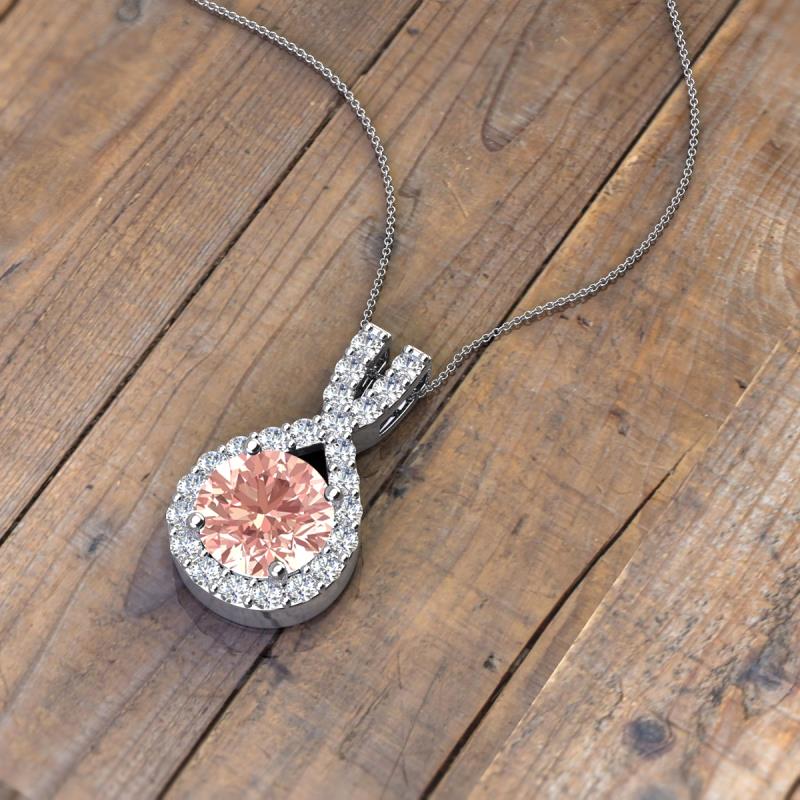 Round Morganite and Diamond 1.13 ctw Womens Halo Pendant Necklace 14K White Gold.Included 16 Inches 14K White Gold Chain More Details ...