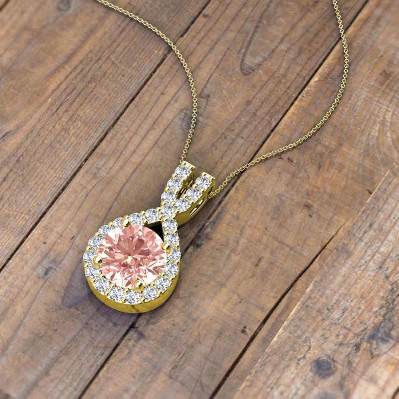 Round Morganite and Diamond 1.13 ctw Womens Halo Pendant Necklace 14K Yellow Gold.Included 16 Inches 14K Yellow Gold Chain More Details ...