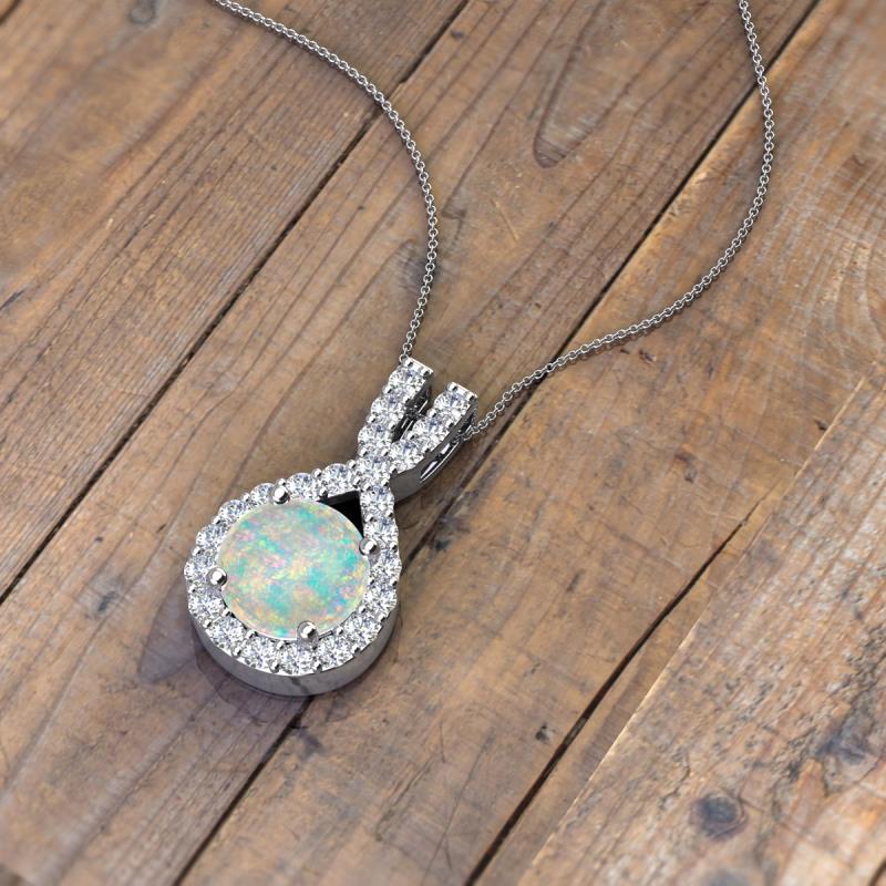 Round Opal and Diamond 0.96 ctw Womens Halo Pendant Necklace 14K White Gold.Included 16 Inches 14K White Gold Chain More Details ...