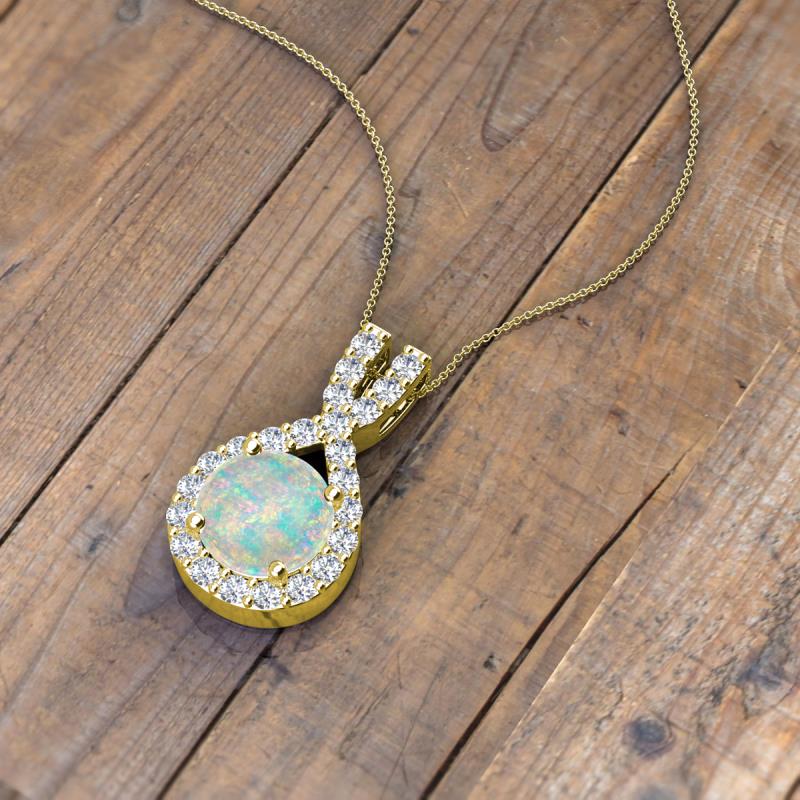 Round Opal and Diamond 0.96 ctw Womens Halo Pendant Necklace 14K Yellow Gold.Included 16 Inches 14K Yellow Gold Chain More Details ...